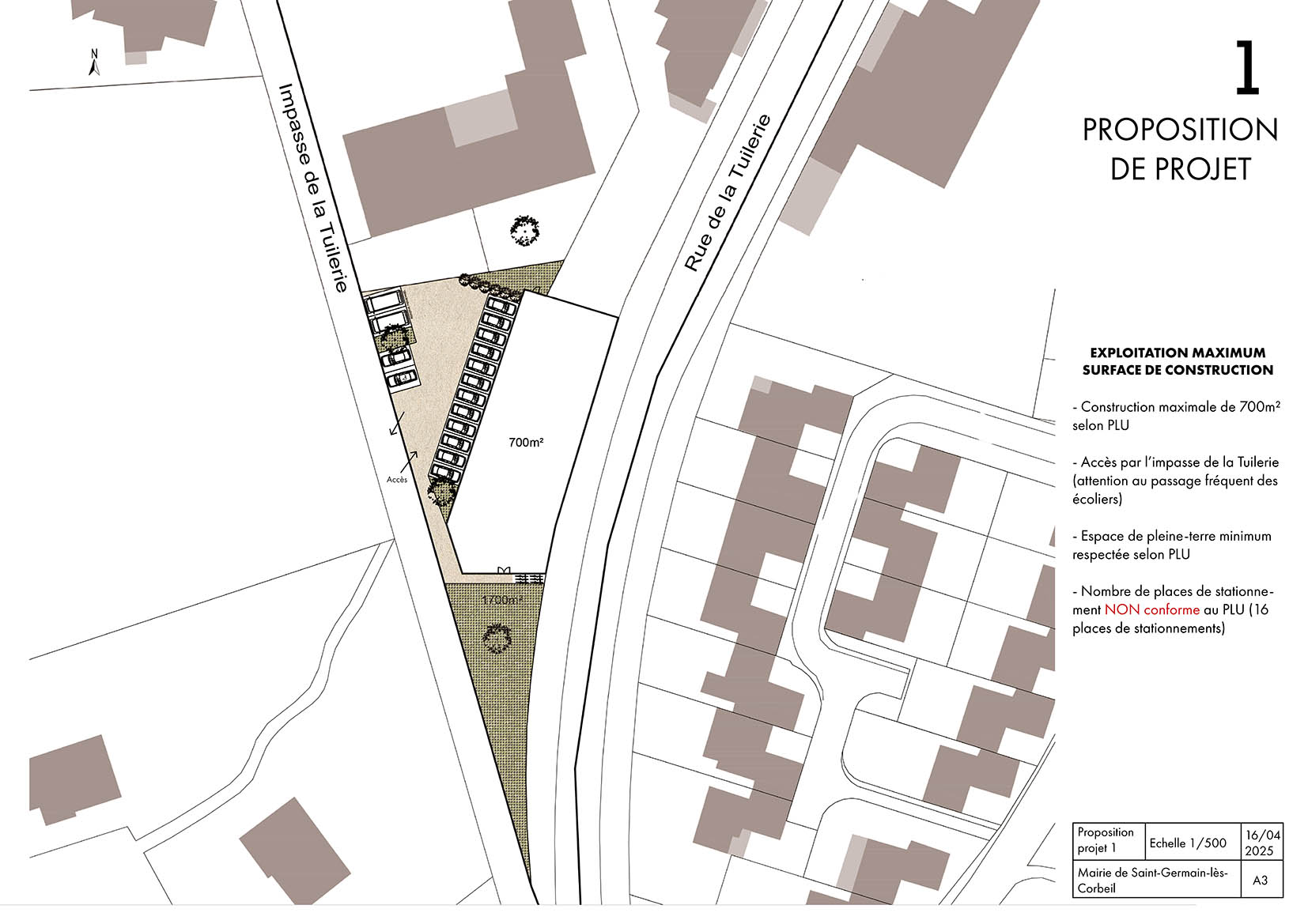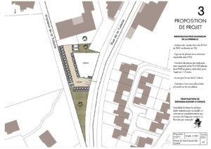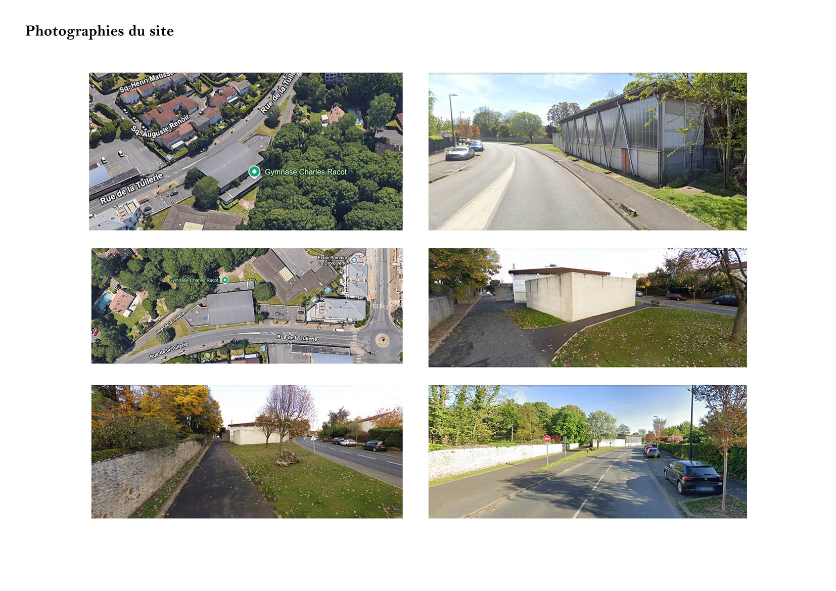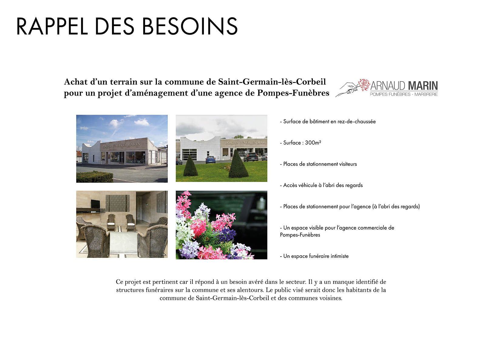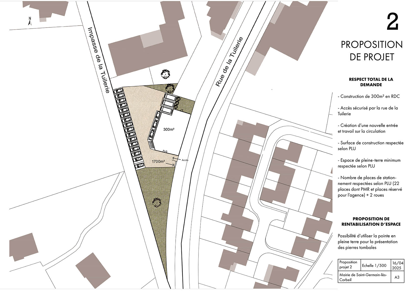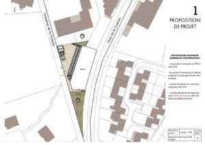 Dans le cadre d’un stage en urbanisme, ce projet portait sur la destruction d’un gymnase, le découpage parcellaire et l’implantation d’un nouveau bâtiment pour l’entreprise de Pompes Funèbres ARNAUD MARIN. L’étude s’est appuyée sur le PLU de la commune afin de définir la constructibilité, le nombre de places de stationnement et la part d’espaces verts. L’accessibilité au site a été pensée avec soin, tout comme l’intégration paysagère du bâtiment. Une proposition esthétique a été formulée pour garantir une harmonie avec l’environnement local.