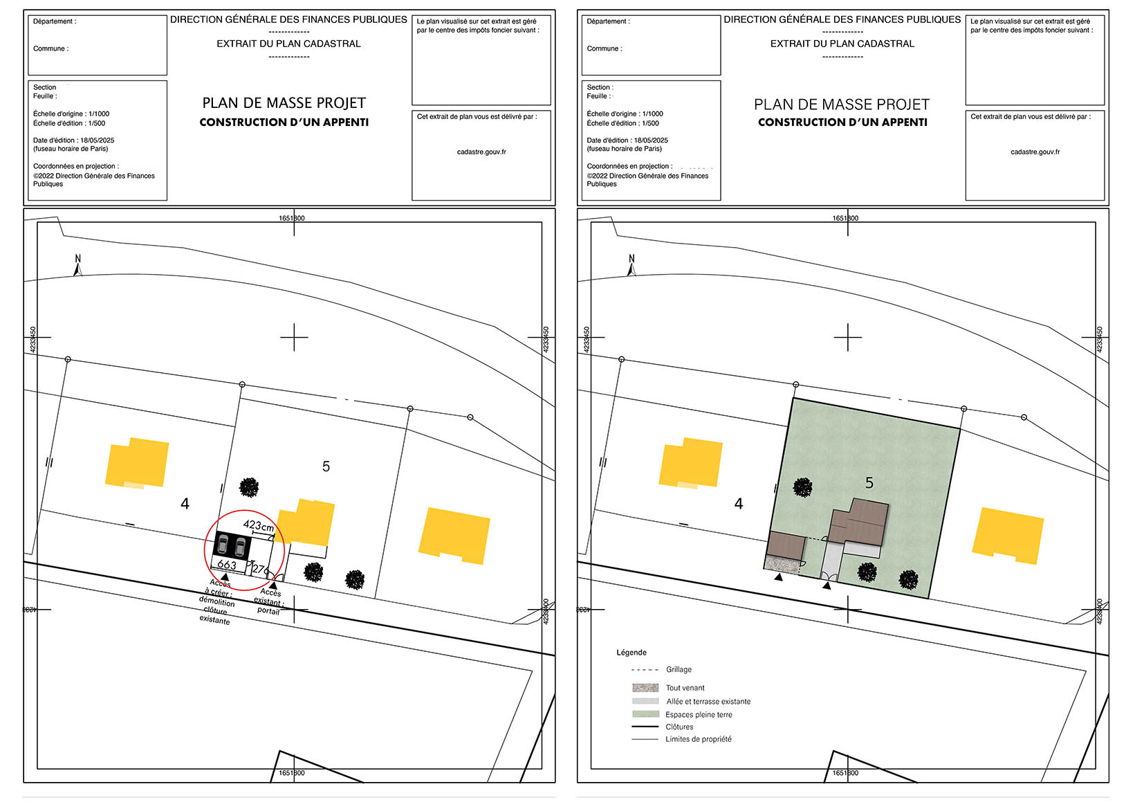 Je maîtrise la réalisation de dossiers de permis de construire ainsi que l’ensemble des documents administratifs liés à des projets de construction, d’extension ou de rénovation. Cela inclut la constitution des pièces graphiques (plans, coupes, façades, insertion paysagère) et écrites (formulaires CERFA, notices, etc.), dans le respect des réglementations en vigueur. Cette compétence me permet d’accompagner mes clients dans leurs démarches administratives, en assurant un suivi rigoureux et complet de leur projet, dès les premières phases.