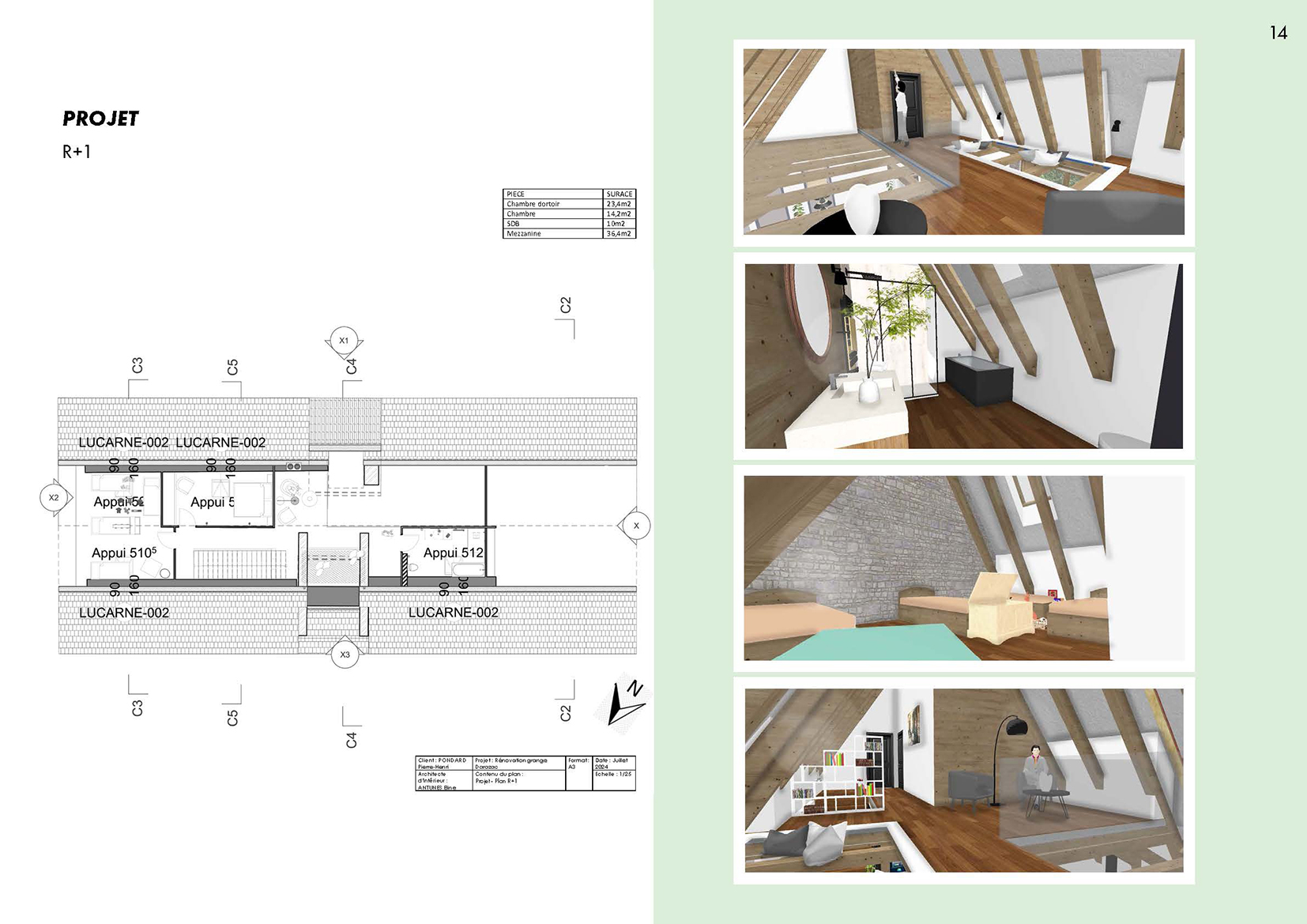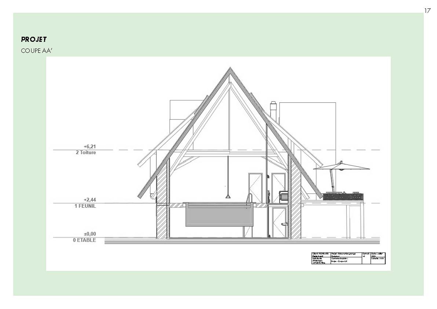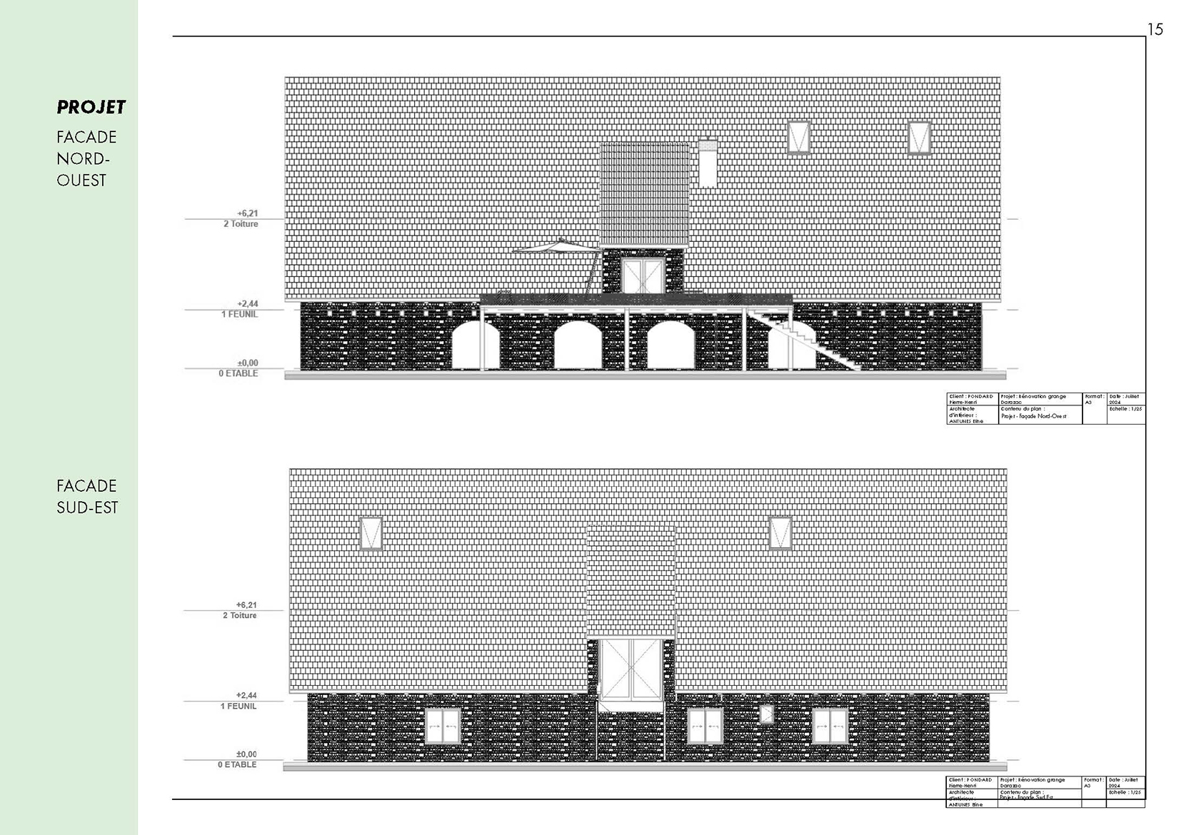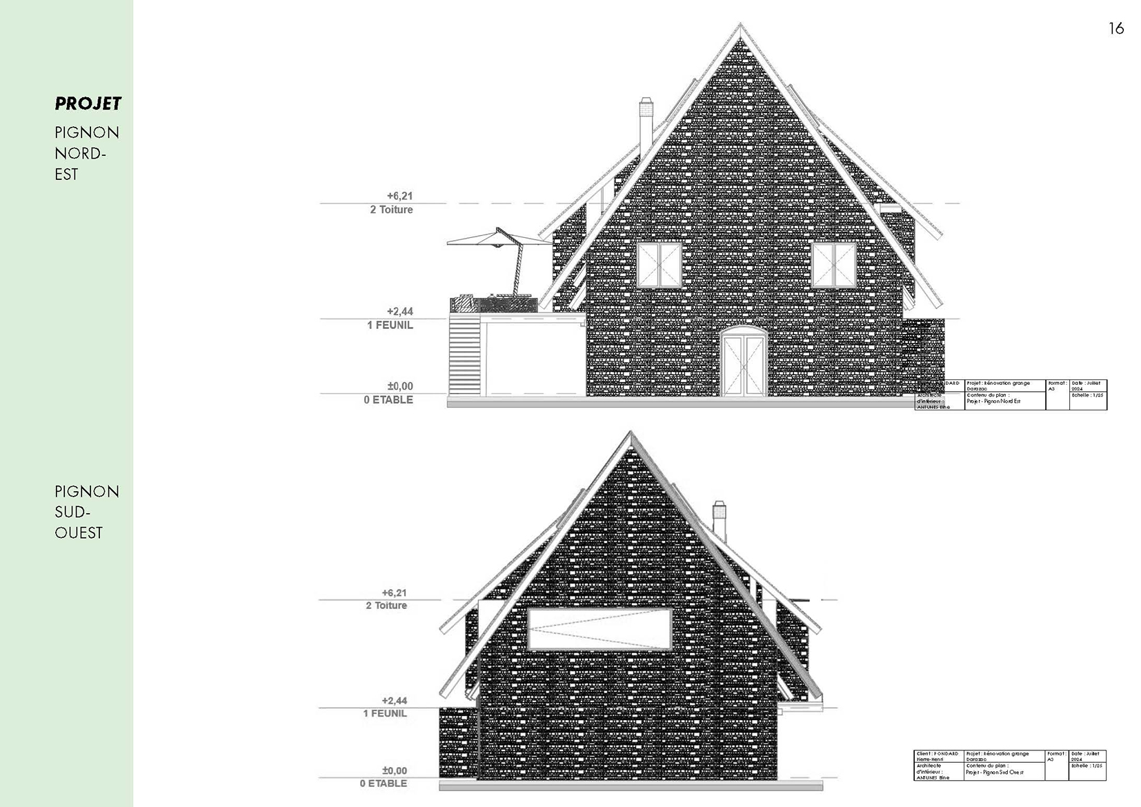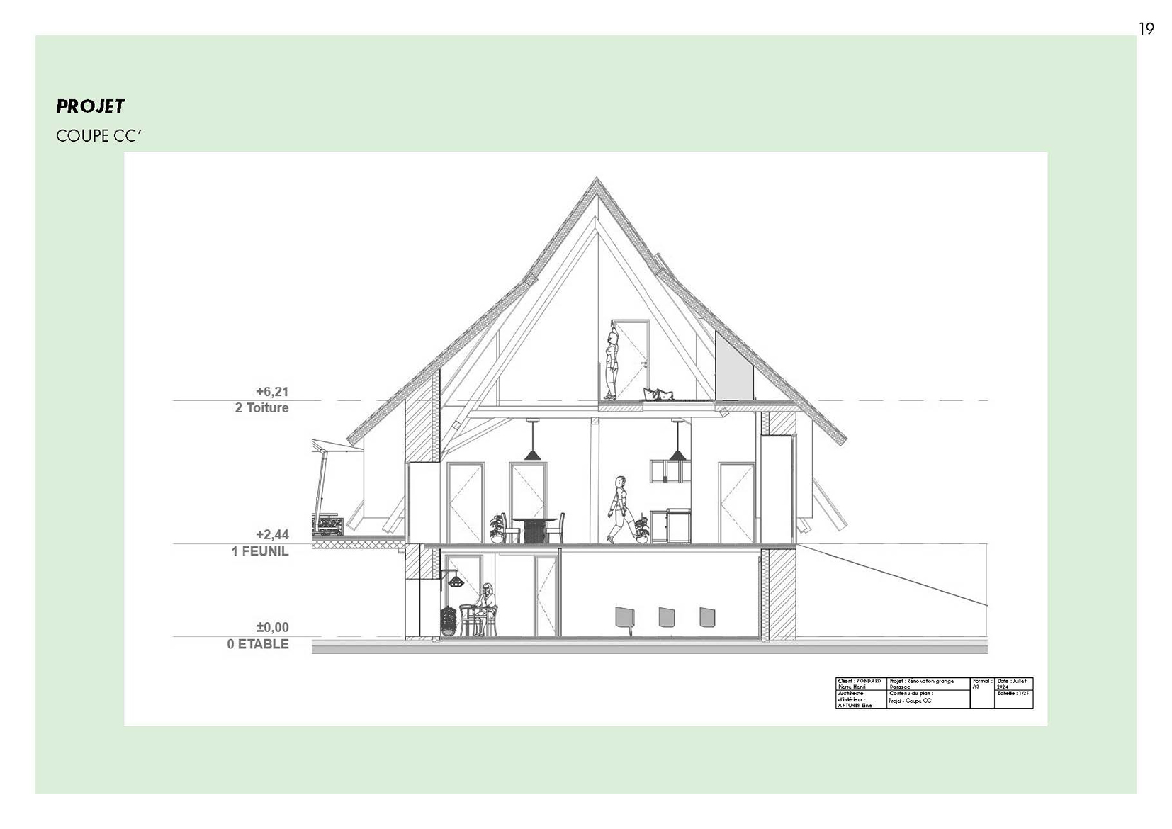 Ce projet propose la réhabilitation d’une grange typique auvergnate de 260 m² au sol, entièrement repensée sur trois niveaux (rez-de-jardin, rez-de-chaussée et étage) pour créer un gîte de France 4 épis. Le projet final développe une surface totale de 780 m², pouvant accueillir une douzaine de personnes dans un cadre confortable, chaleureux et accessible PMR. Il intègre une piscine intérieure, une grande terrasse et des espaces de vie généreux. L’approche architecturale respecte l’âme du bâti rural tout en lui apportant le niveau de confort 4 épis.