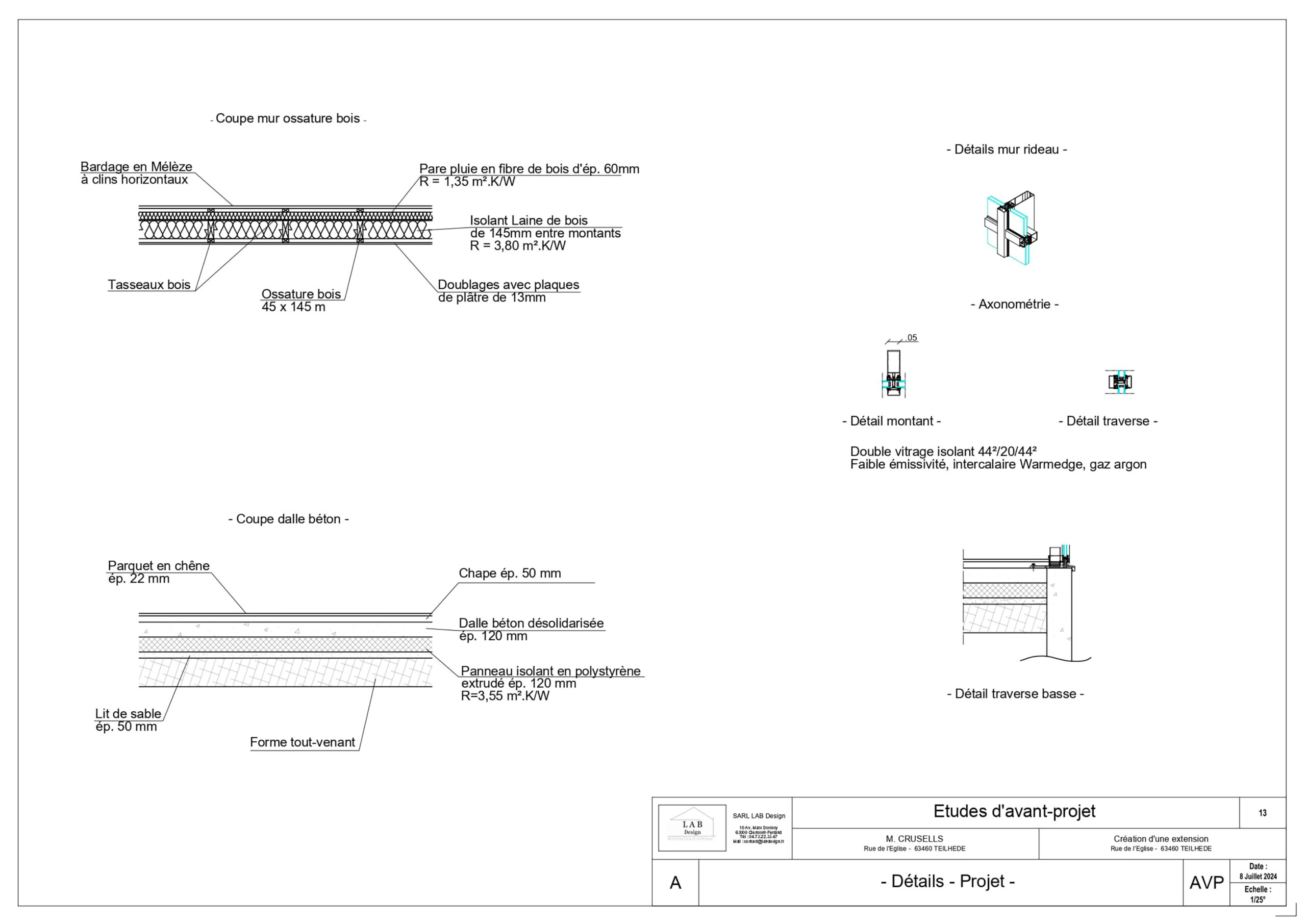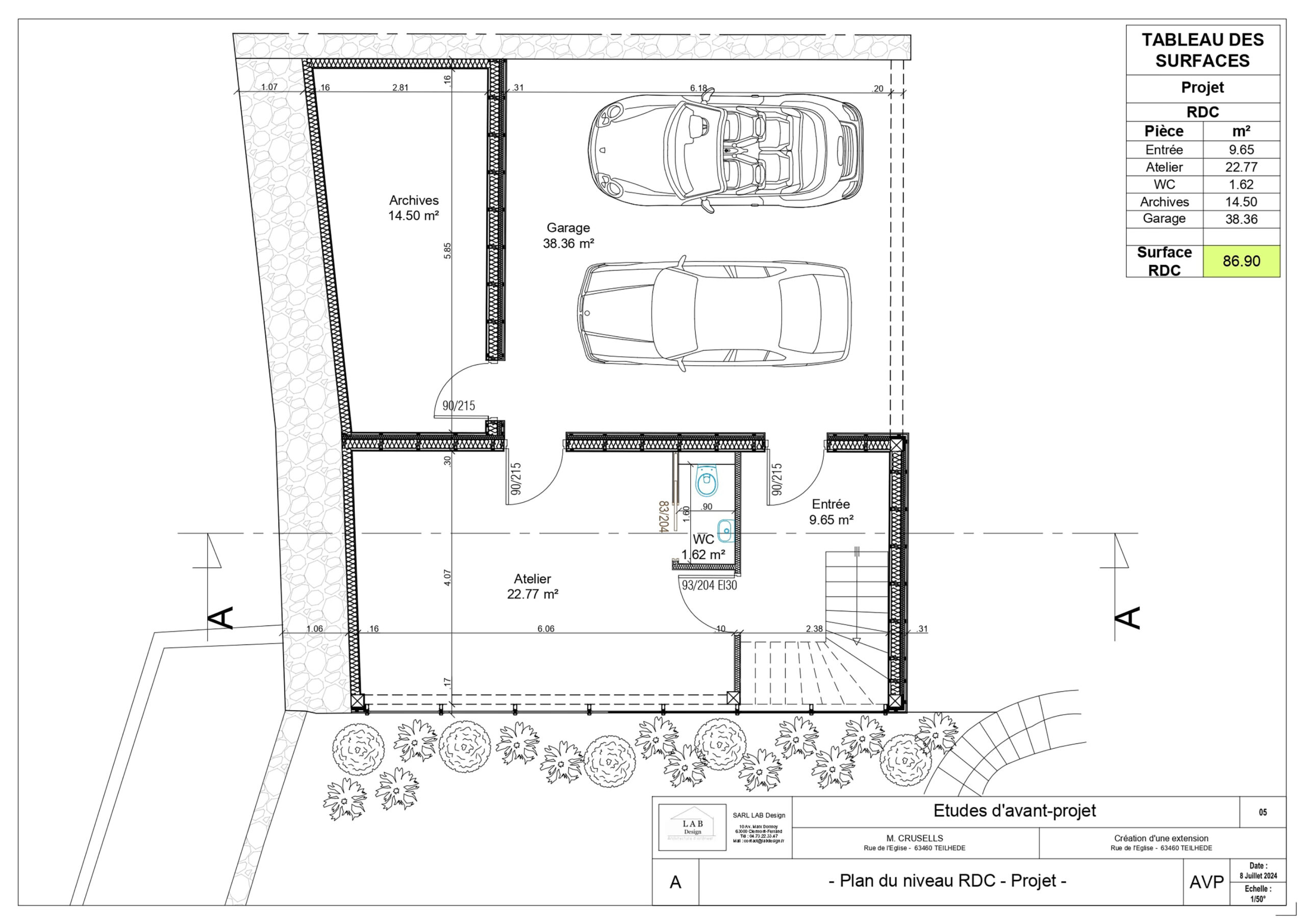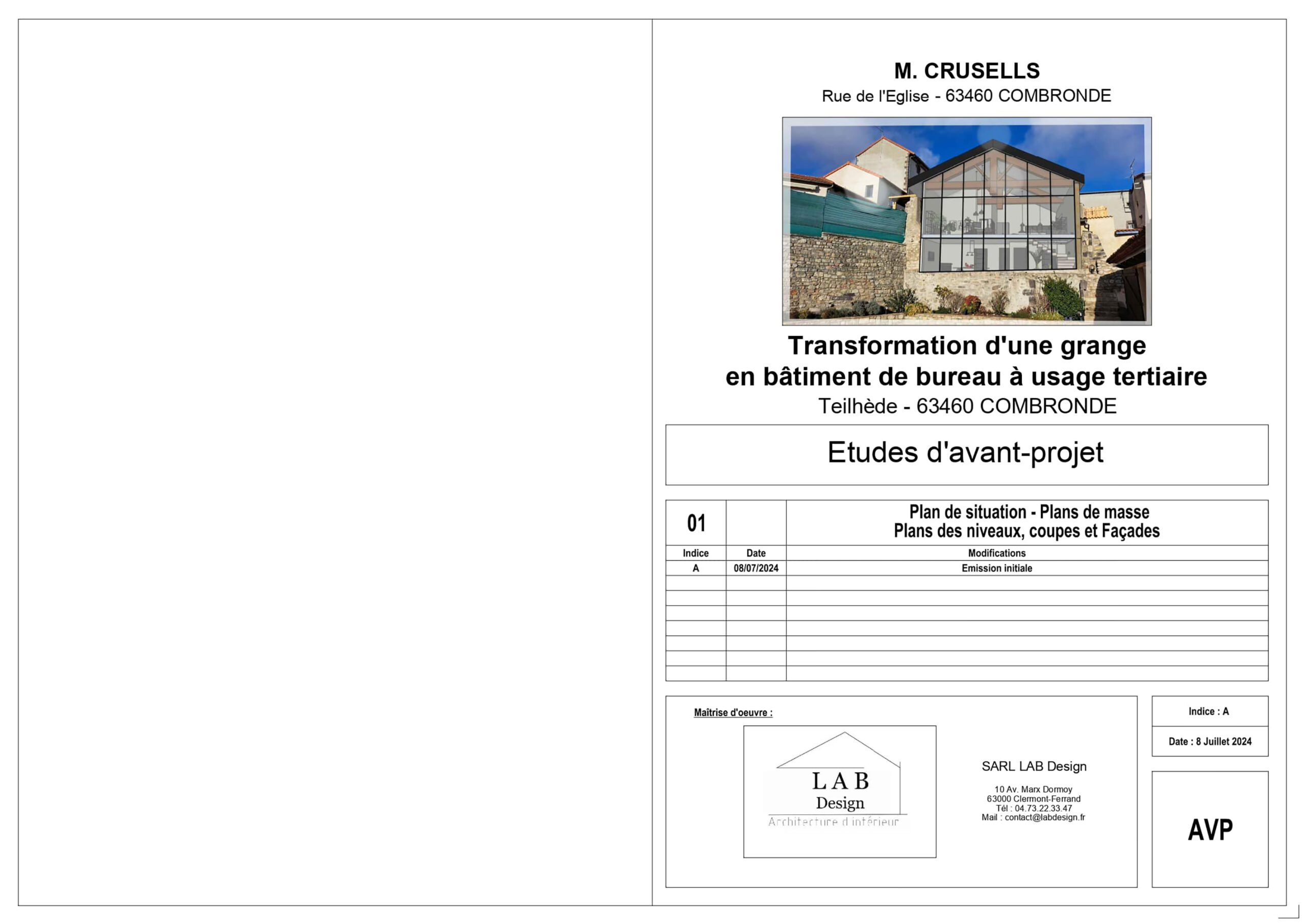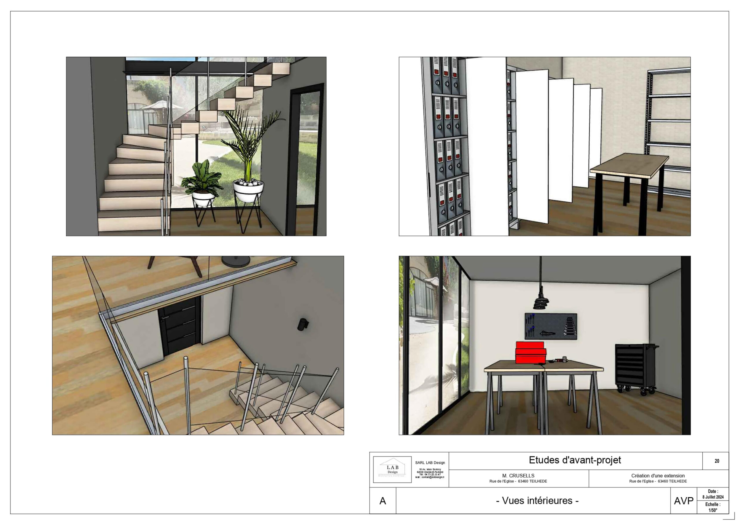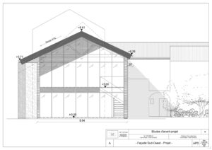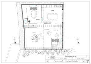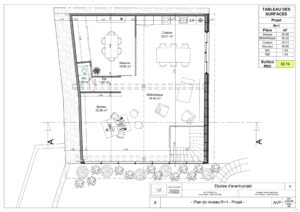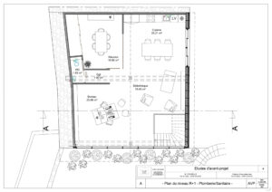 Par équipe de trois, nous avons reconverti un atelier en espace de bureaux sur deux niveaux. Nous avons assuré l’ensemble du processus, de l’état des lieux, à l’APS, APD, plans techniques, mobilier et décoration intérieure, jusqu’au permis de construire et aux visuels finaux. Le programme comprend bureaux, atelier, salle de réunion, archives, cuisine et sanitaires. Le parti-pris architectural fort a été l’intégration d’un mur-rideau en façade, apportant lumière naturelle et qualité d’usage dans un cadre de travail contemporain.